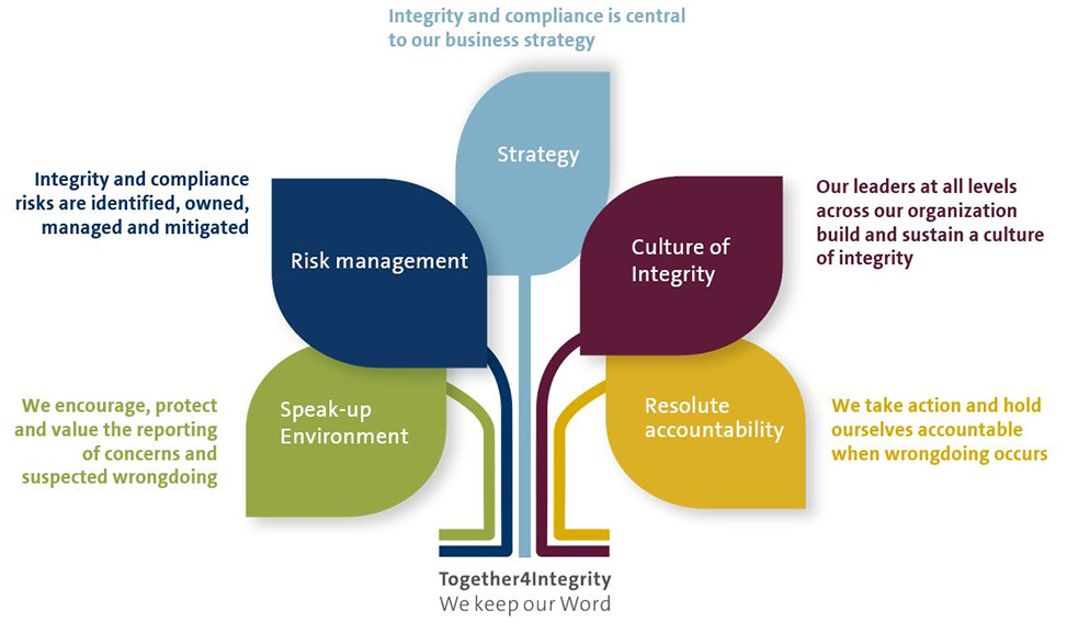 T4I is based on the five principles of the internationally recognized Ethics & Compliance Initiative (ECI), which relate to strategy, risk management, a culture of integrity, a speak-up environment and resolute accountability.